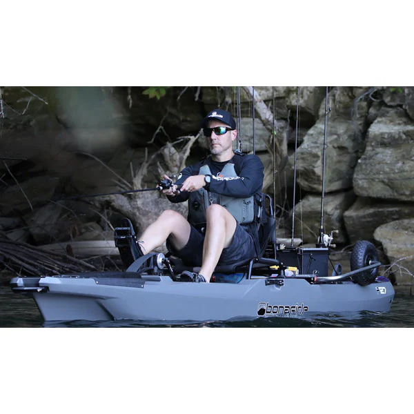 The Bonafide P127 Kayak is a high-performance fishing kayak designed for serious anglers who want stability, efficiency, and versatility on the water. Measuring 12 feet 7 inches in length and 34 inches in width, this kayak is built with a catamaran-style hull that provides exceptional stability, making it easy to stand and cast with confidence.