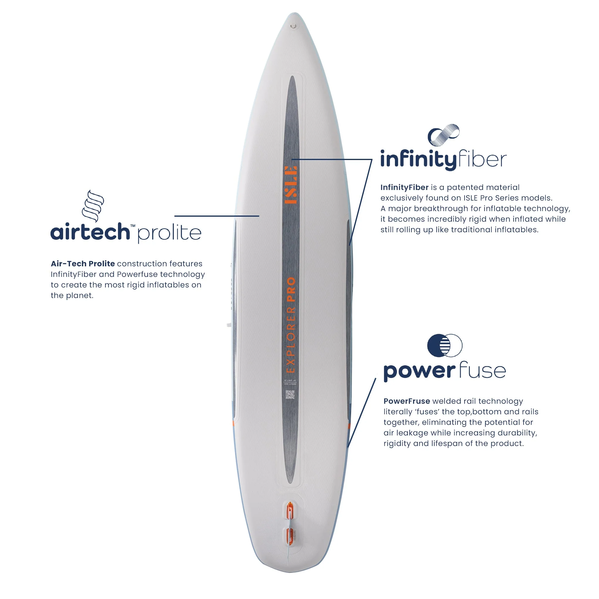 The ISLE Explorer Pro Package redefines inflatable paddle boarding with an innovative combination of rigidity, speed, and adaptability. Whether you’re touring long distances, camping with gear, paddling tandem, or switching between paddleboarding and kayaking, it delivers performance, convenience, and confidence like no other iSUP.