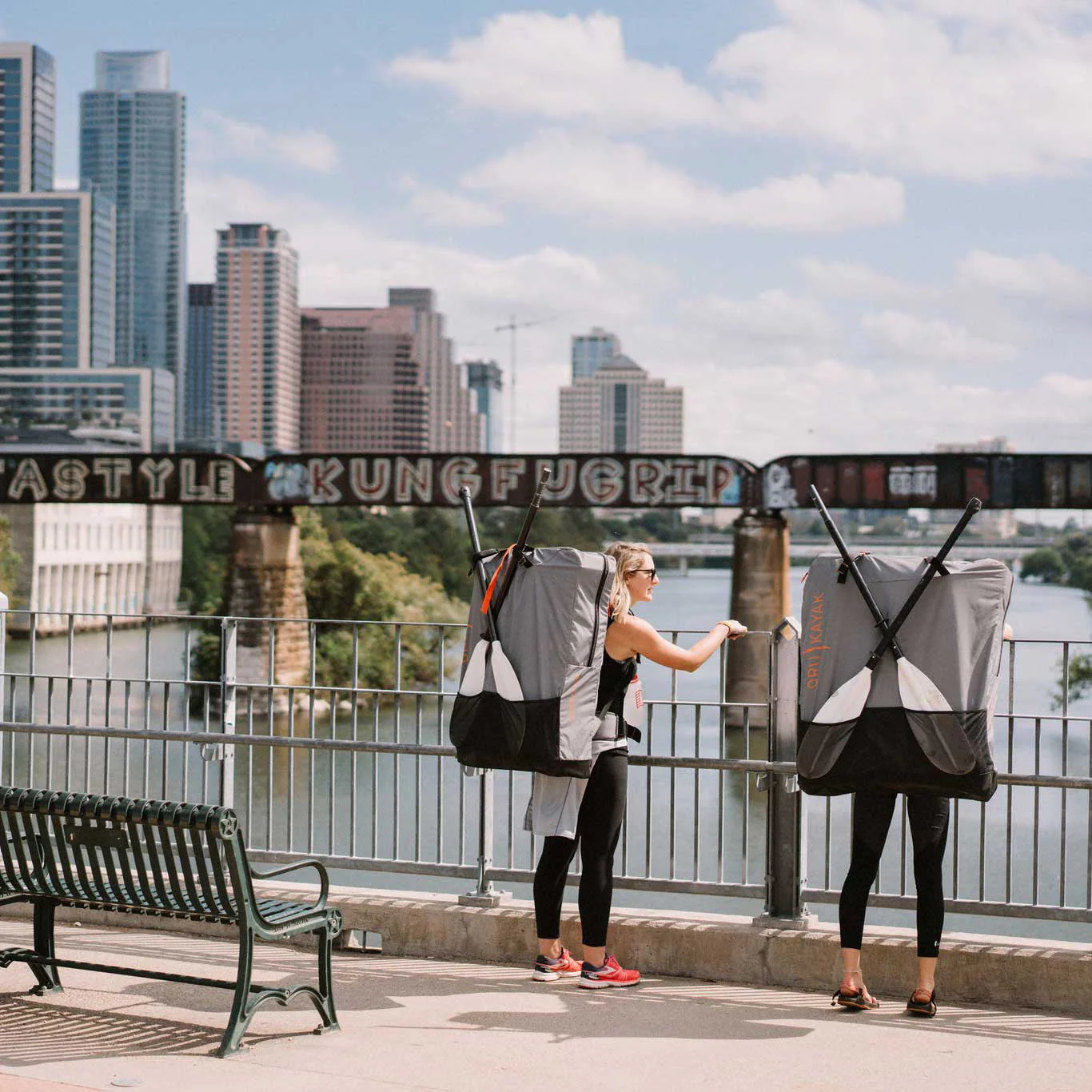 A 12’3″ kayak that folds down to the size of a large suitcase. At 26 pounds, it’s far lighter than a rotomolded kayak. It’s compact enough to store almost anywhere. With the Oru Pack, you can even check it on a plane or hike into the wilderness.