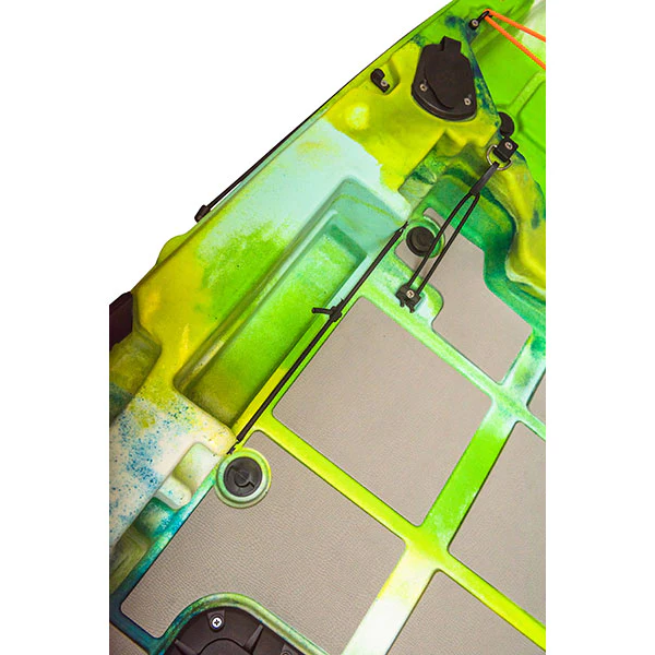 The Pike has an easy-to-operate adjustable foot control or hand-controlled rudder system, and the system is interchangeable from one system to another. The Deep adjustable rudder provides great direct action and limits drift therefore keeping the speed of the Kayak. As a bonus, the Rudder blades are compatible with the Bixpy motor. Should you wish to add a Trolling motor, there are Brass inserts molded in at the Stern of the Kayak to make provision for a side motor mount.